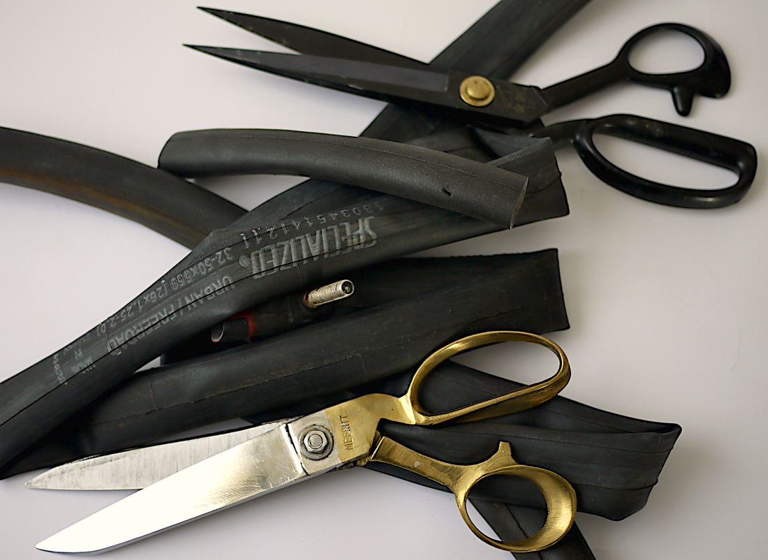 - Matériaux : Chambre à air de vélo recyclée / Acier inoxydable